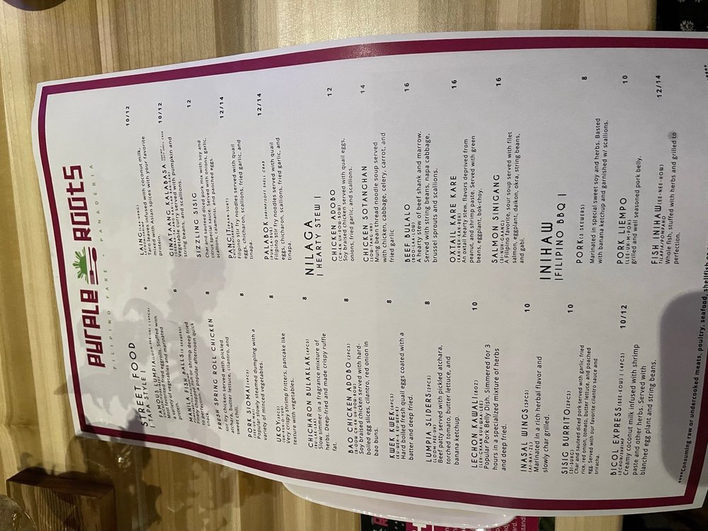 Overall, my experience at Purple Roots was memorable, with excellent service, fantastic food, and a vibrant dining environment. I highly recommend stopping by this hidden gem to experience the best of Filipino cuisine in Jacksonville.